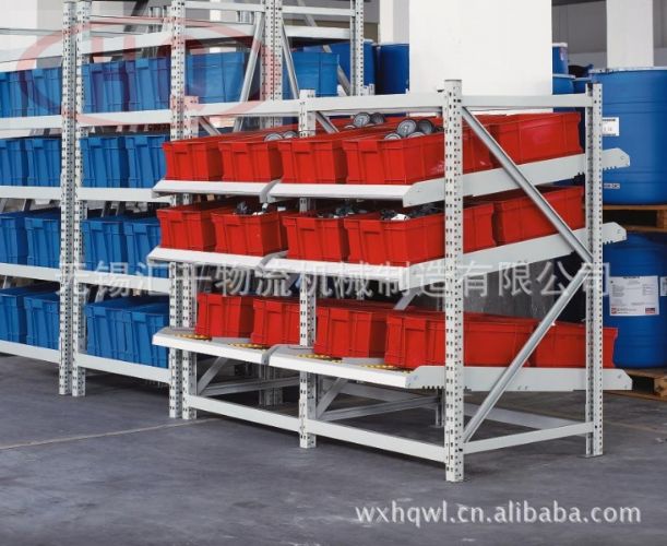 流利式貨架又稱滑移式貨架,采用輥輪鋁合金,鈑金等流利條,利用貨物臺架的自重,從一邊通道存貨,另一邊通道取貨實現先進先出,存儲方便,以及一次補貨多次取貨。流利架存儲效率高,適合大量貨物的短期存放和揀選。可配電子標簽,實現貨物的輕松管理,常用滑動容器有周轉箱,零件盒及紙箱,適合大量貨物和短期存放和揀選。廣泛應用于配送中心、裝配車間以及出貨頻率較高的倉庫。