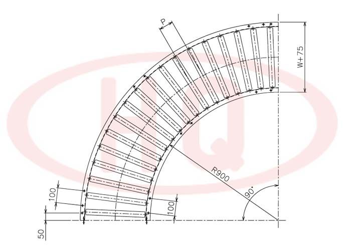 | 型 號(hào) | 滾筒外徑(φ)×壁厚(t) 軸承 | 軸外徑(φ)×壁厚(t) 加工 | 支架形狀I(lǐng)×K×t 輸送機(jī)高(H) | 機(jī) 長(zhǎng) L | 滾筒幅 寬 W | 滾筒間隔 P | 轉(zhuǎn)彎半徑 R | |||||