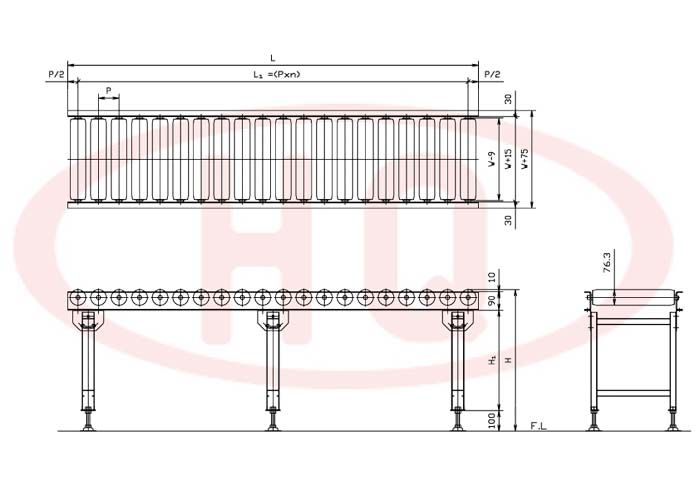 | 輸送機幅寬 W+75 (mm) | 175 | 275 | 375 | 475 | 575 | 675 | 775 | 875 | 975 | 1,075 | ||
